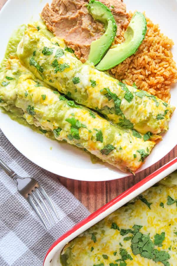 Quick and easy green chicken enchiladas. These shredded chicken enchiladas are healthy and the best enchilada recipe! Place tortilla in baking dish. Weeknight green chicken enchilada recipe. Enchiladas don't have to take hours of work.